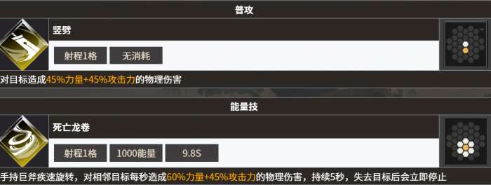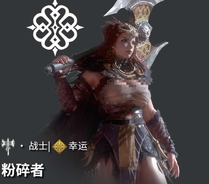 同为幸运阵营的粉碎者别看也是女性角色,这个英雄确实一个被定位位战士的角色,同时也是一个专门针对单体目标的角色,光是劈砍就能给敌人造成45%力量和45%攻击力的物理伤害,手持巨斧的她在用出能量技死亡龙卷以后,巨斧会进入到告诉旋转的状态,只要敌人在碰触到该状态的巨斧就会受到60%力量和45%攻击力的物理伤害,被动技能狂战士是一个能够回复自身生命值的技能,当粉碎者的自身的血量低于70%、50%或者是30%时,她的技能伤害就会分别提高10%、20%以及30%,每秒钟还会回复10%、30%以及60%的生命值,野蛮蹬踏需要受到攻击才能触发,粉碎者在受到5次伤害以后,该技能就会被触发,触发后的她会直接对敌人进行野蛮蹬踏,敌人会受到50%攻击力的物理伤害,且还能把敌人给击退2敌,并附带上眩晕效果。