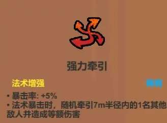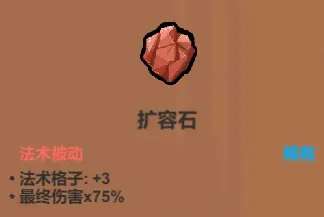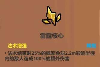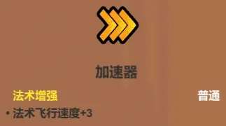 看似很适合搭黑洞落雷阵之类的法术,实际上现阶段没太大用处。虽说影响半径越大群伤效果越好,但实际上现阶段的小怪,第一第二关一般没多到你需要范围增强,第三关你构筑完成了又不太需要范围增强。至于打boss,更是一般用不上这个,用来勉强代替加速器,或者槽位有空余,那倒是可以上它。