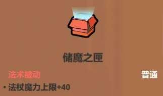 比储魔之匣好用一点点,没满天赋时可以用,满天赋后其实它的表现不是很好,毕竟也就只有那点回蓝,一星也才6点(满天赋到了第三关基本法杖回蓝都在20多接近30左右),有空余格子可以放一个,或者勉强平替一下省电模式。不过在有蓄能法球的情况下,挂在其他法杖里表现还是可以的,毕竟不占主杖法术槽。