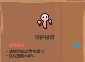 杖灵效果和共鸣、魔导书类似,但更简单粗暴,无需启动条件,只要挂上就会自动施法,唯一问题就是回蓝速度比魔导书更低,基础仅有40%。但它有一个特性,就是只要在施法范围内,它施法不会受任何情况影响(包括你本身使用石化药水)。所以杖灵一般是在你本身使用防御性法术(如闪电疾行、滚石、破魔剑、光之柱等)的情况下,它去装配法术机关枪启动共鸣打输出,去构筑一个攻防一体的体系。现阶段由于构筑好了困难第三关boss也是随便秒的,所以杖灵没有太多使用它的理由,但在以后开启更高难度或者无尽模式的时候可能就需要用到它了。