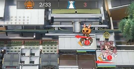 这一关的难度同样也不高,如图所示位置部署艾雅法拉(向左) → 克洛丝(向左)火力覆盖即可。