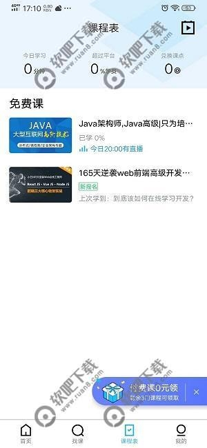 1、打开手机上的腾讯课堂软件,点击软件界面下方的【课程表】选项,点击之后进入课程表界面;