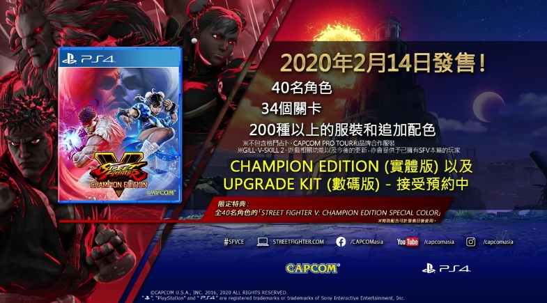 《街头霸王5:冠军版》于2020年2月14日发售,登陆PS4/PC平台,感兴趣的玩家可以关注一下。