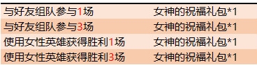 可通过组队开黑最多可获得女神的祝福礼包*4