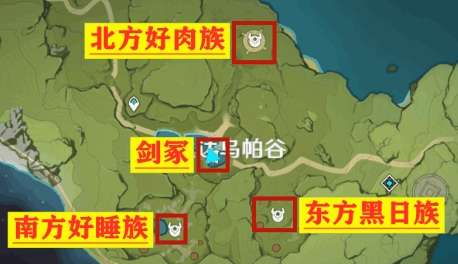 三个封印结界对应三个机关,分别在三个丘丘人部落中。分为:北部【好肉族】、南方【好睡族】、东方【黑日族】。
