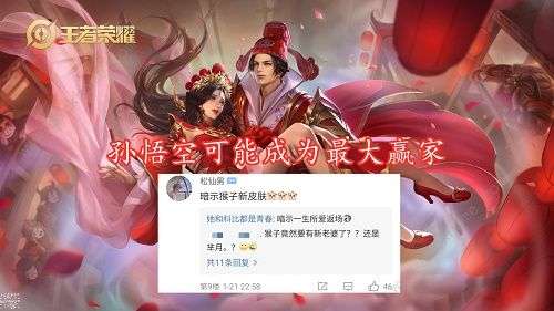 孙悟空的话,目前来看,跟白晶晶的情侣皮肤肯定是有可能的,但是就算有可能,也不会这么早就进行曝光。