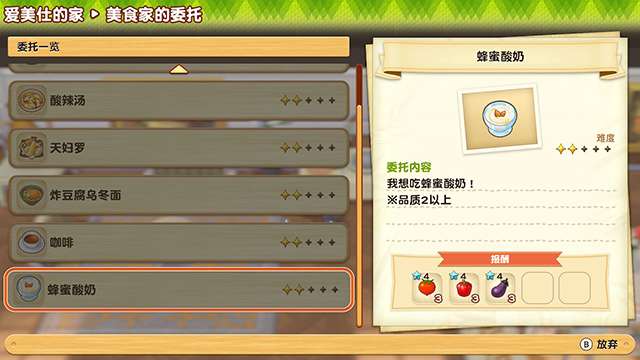 咖啡:食材没难度,发现食谱需要料理等级LV6。