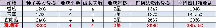 但种这些都不如种蘑菇赚钱,蘑菇的收益简直就是暴利,甚至比养动物还要赚钱。
