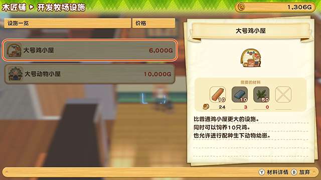 一是必须在大号动物/鸡屋中进行,大号设施可以在工匠店开发,给相应的素材和金钱后,直接入手。后续如果还想要获得大号设施,也只能通过开发获得。