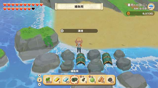可以收获鱼或者贝类,通常收获的品质较高,且可以同时设置多个,放置在海滩岩缝之间即可。