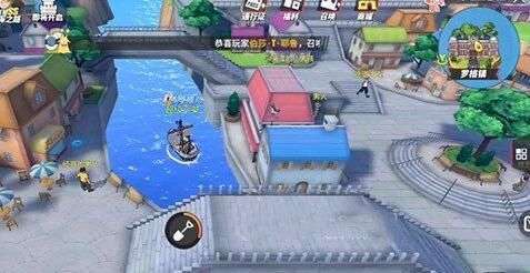 玩家来到这个罗格镇近海的区域,然后在如图所示的地方,就是这个桥的上面,需要你乘船才可以来到这个地方。