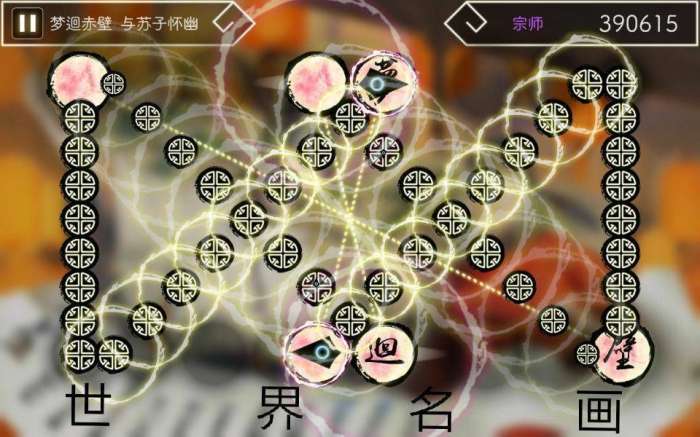 阳春作为一款包含大量以古诗词为歌曲创作来源的游戏,非常重视古诗歌词互动,除了在note中间出现文字外,为了进一步增加玩家的带入感,许多歌曲的谱面中包含文字押,这是一种特殊的谱面,是指当歌曲演奏到特定歌词时,屏幕上会浮现note组成的字词,玩家需要用点触或者拖曳的操作书写这些字词来完成演奏。