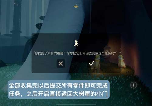 6、全部收集完后点击勾勾,返回大树屋去提交任务。