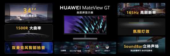 采用沉浸式曲面屏设计的华为MateViewGT显示器,具有34英寸曲面屏、1500R曲率、165Hz高刷新率以及一体式可触控调音底座SoundBar,不仅能够为办公人士带来更好的体验和更高的效率,还满足影音爱好者、电竞玩家的高标准需求。