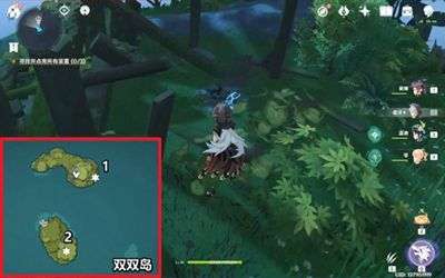 2、位于双双岛上上下两端分别各有一个海螺。