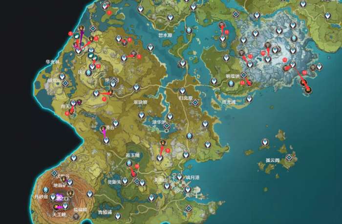 总体顺序为:璃月→雪山→稻妻→渊下→层岩