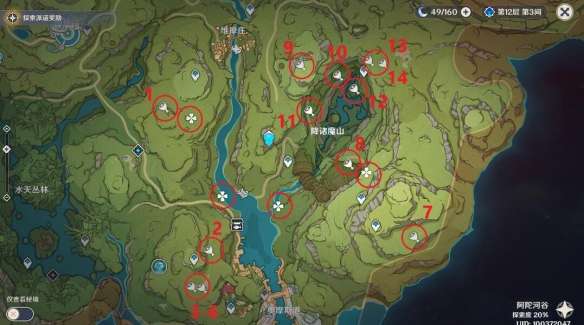 图中标记了14个能量块,其中1,7,8,9这四个不建议去拿,拿10个就够用了)