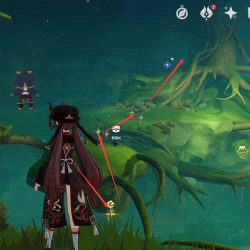 2、来到传送点后,朝着地图东南方向看。朝着我插柱子的那里走,走到了就停在那。