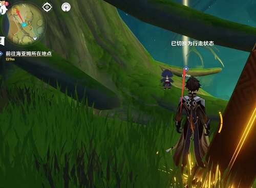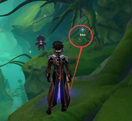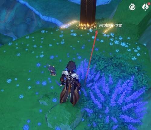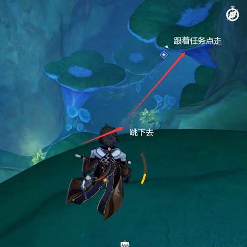 5、对话结束后,他会让你去一个山洞里面。跟随任务提示来到这里,然后跳下去一直朝里面走,单行道。走到头就能遇到他了,触发任务。