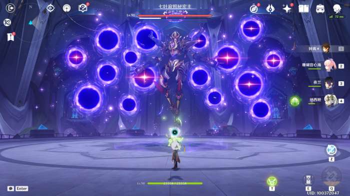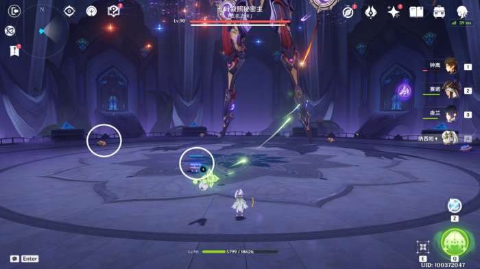 (1)来到正机之神的第二阶段,我们需要在BOSS释放藏界百摄爆轰(如图所示)时,使其护盾值清零