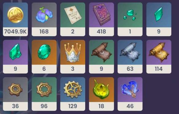 摩拉60000、自在松石断片6、奇械发条备件·歌裴莉娅4、柔灯铃20、机关正齿轮12。