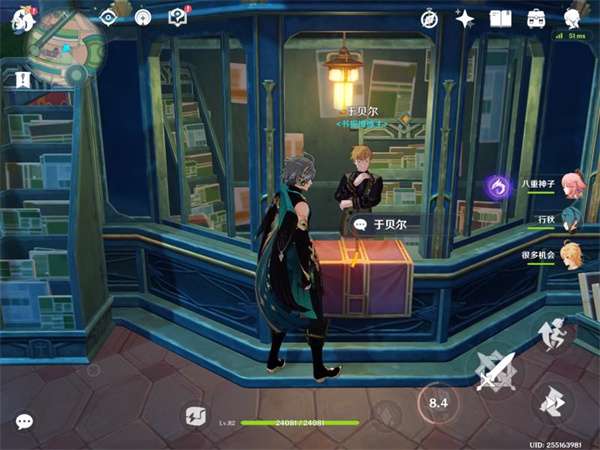 5、沿着楼梯下去,来到书店与NPC于贝尔进行对话。