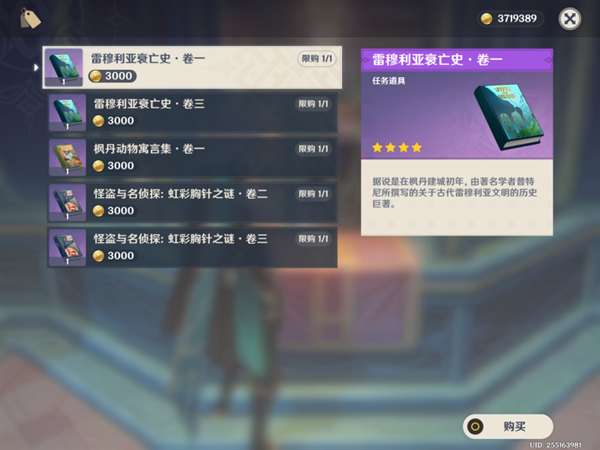 6、对话结束后,购买书店里的书籍,将《怪盗与名侦探》和《雷穆利亚衰亡史》集齐即可达到成就。
