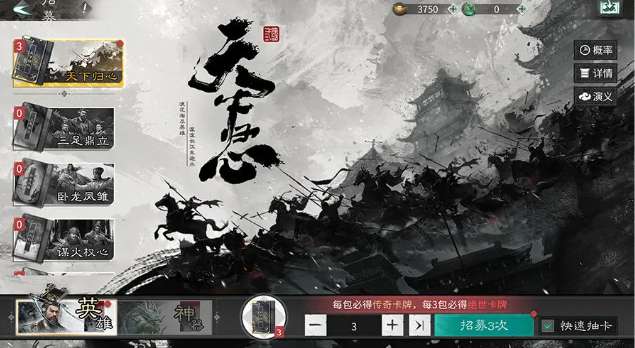 比如说开荒的时候一定是要有奶妈的,没有奶妈前期大家打武将的话,其实在整体难度上面会有提升不少,因为前期大家的粮草是非常少的,所以使用起来一定要珍惜一些,这里大家可以用到的国家队在抽卡没有那么多的情况下,可以考虑到的是一个蔡文姬加荀彧加张辽的搭配,这样的一个国家队主要就是用来秒后排的,所以是可以针对敌方的核心输出角色来进行攻击,当然如果抽不到以上的这三个角色,大家还可以考虑的就是黄月英加诸葛亮加赵云这个搭配。