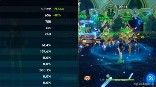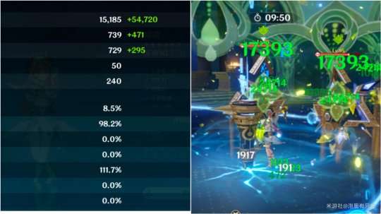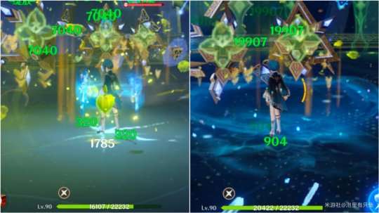 左图是没有妮露被动的种子伤害7040,右图是开启了丰穰之核后种子的伤害19907。实际上最终增伤是182.77%
