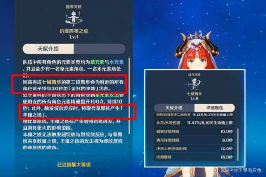 该天赋言简意赅,根据妮露自身生命增加种子伤害值。超过30000部分生效,70000血量下能增伤400%。