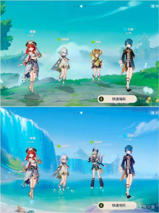 由于丰穰之核的限制,妮露队伍只能存在水系和草系角色,那么最优组合肯定是妮露+纳西妲,至于三四号位角色可以根据具体情况选择奶妈、盾辅或者副C。