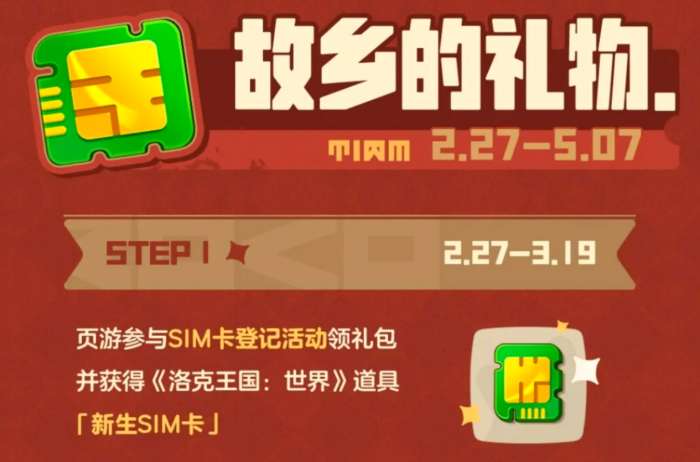 另一个活动叫"故乡的礼物",2月27日开始,同样到5月7日结束。页游里面完成SIM卡登记,就能领到礼包,礼包里包含一张洛克王国:世界用得上的道具,叫新生SIM卡。拿到之后在洛克王国世界完成注册,通过游戏内邮件领取道具,做完对应任务就可以拿到记忆中的肤色和头像奖励。还有一个额外的点,激活SIM卡之后可以分享给最多10位好友,好友也能拿到奖励。也就是说,就算从来没玩过页游,通过新作那边一样能参与这部分福利,门槛不高。