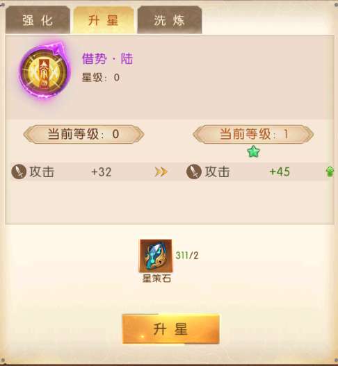 每件计策可消耗对应材料进行强化、升星、洗炼。