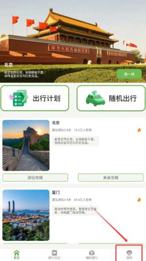 1、打开蒲公英旅记APP,进入首页后点击右下角“我的”选项。