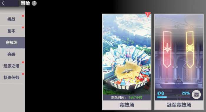 人们可通过冒险菜单里的竞技场模块进入PVP玩法,目前空灵诗篇共有两种PVP模式,分别为竞技场与冠军竞技场。其中,竞技场需编好一队防守阵容,待其它的玩家来挑战,同时自己也能通过匹配,去挑战其它玩家所编好的防守阵容,每天可免费进行五次,用完后可消耗挑战劵来获取额外的挑战机会。通过挑战,玩家能不断地累计挑战积分提高自己的排名,且每天能通过排名结算获得相应档位的奖励。
