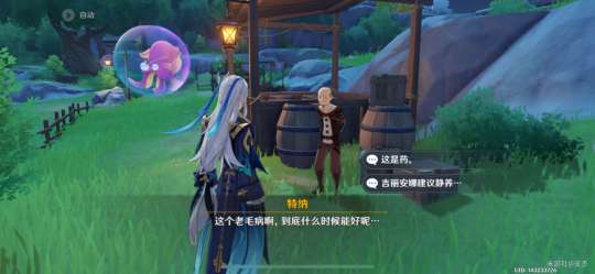获得药后的对话,选择第二个选项“麻烦你了。”说的是吉丽安娜的建议是有人照顾,那就不需要服药了