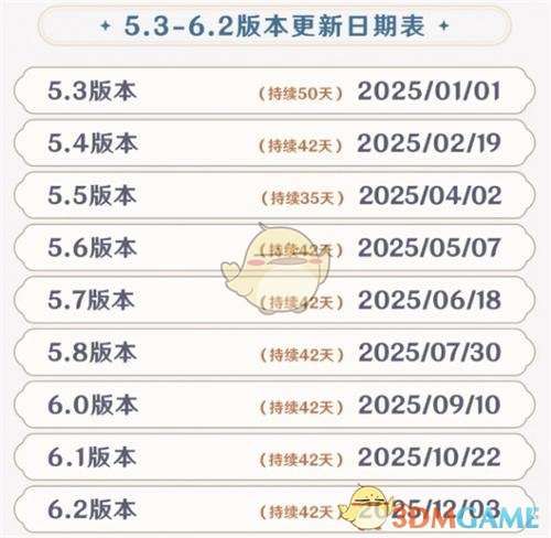 6.2版本预计将持续42天,更新日期为2025/12/03。