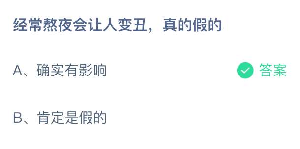 以上就是经常熬夜会让人变丑,真的假的?支付宝蚂蚁庄园2026年1月28日答案最新,更多相关攻略,请关注pk游戏网更新!