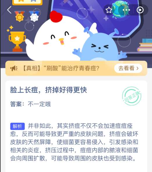 以上就是脸上长痘,挤掉好得更快,支付宝蚂蚁庄园2025年9月14日答案最新,更多精彩内容,请点击关注pk游戏网更新!
