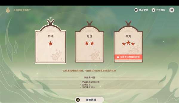 学会了基本操作,旅行者们就可以正式参与今天的活动了。活动限制,不能直接开启最高难度倾力,因为今天的活动难度不高,建议大家直接从专注难度开始。