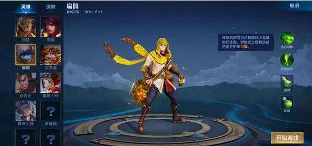 1、玩家需要选定一位英雄,选择初始的道具和武器。