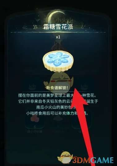 3、最后完成制作后,就能解锁霜糖雪花派食谱了。