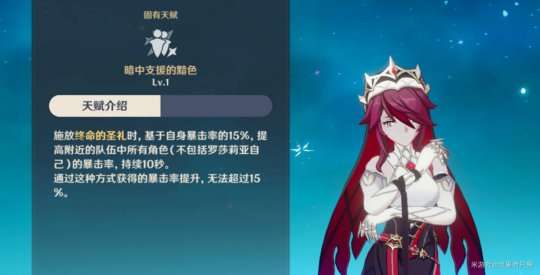 此外,她还有一个容易被忽略的辅助天赋增加全队暴击率。