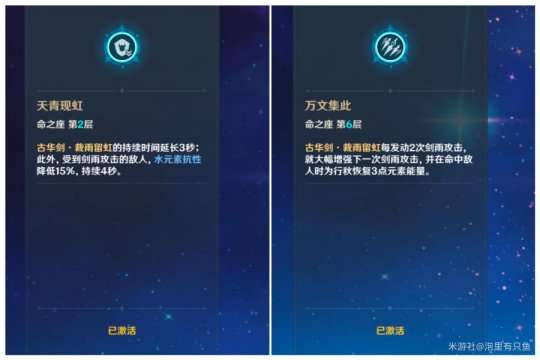 行秋的核心命座分为二命和六命。二命主要注重提升循环能力,而六命则主要注重提升自身输出。