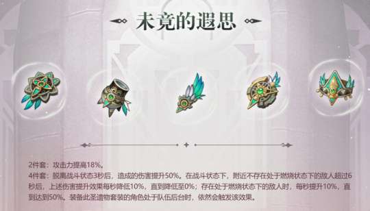 意味着只要存在燃烧反应,队伍中输出角色都能带这套(最好还吃18%攻击力)
