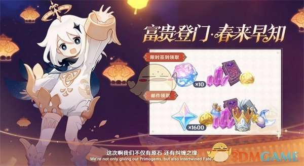 签到可领取10枚纠缠之缘,累计登录还可获得1600原石。