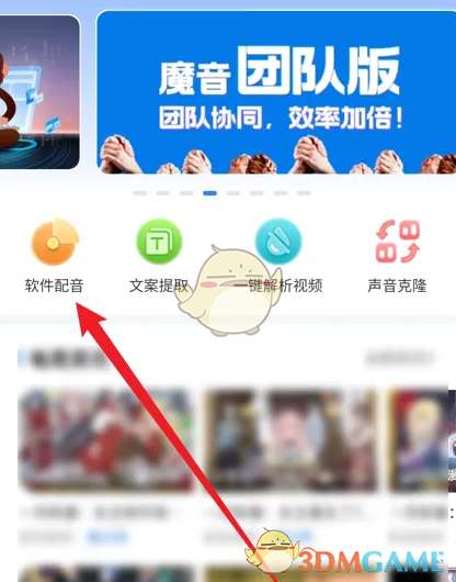 1、打开魔音工坊app,点击主页中的”软件配音“;