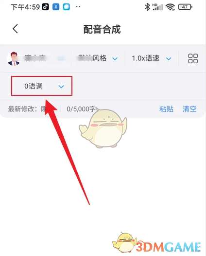 3、在打开的窗口中上下滑动修改配音语调。