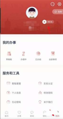 2、接着点击我的,找到上方的未实名,点击进入进行账号的实名认证(账号必须实名认证,不然不可以办理相关的业务);