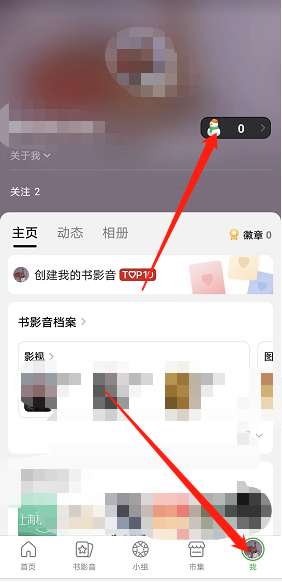 1、打开豆瓣应用后,点击下方的我的进入个人中心,然后点击个人头像右侧的符号。